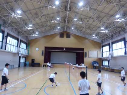 体育館では,バドミントン部が活動をしています。