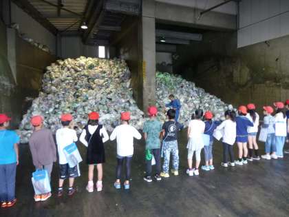 あいにくの雨と,花火大会のために予定していた道が封鎖されていたこともあり,大変な道中でしたが,たくさんのことを学んでくることができたと思います。ぜひご家庭でも,子どもたちの学びを生かして,ごみの分別を実践していただければと思います。
