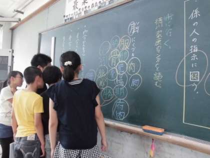 国語科で『漢字の形と音・意味』の学習をしました。今日は月<にくづき>・月<つきへん>の違いに気付いたり,<てへん><りっしんべん>などの漢字をあつめ,この部分はどのような意味があるのかを調べたりしました。