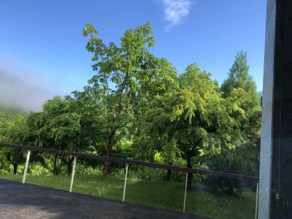 朝の集いが始まります。晴れてきました。