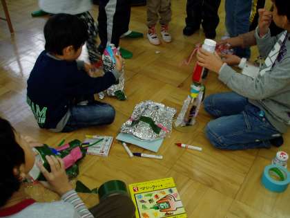 京都市美術館で開かれる「小さな巨匠展」に向けて,近隣の育成学級児童が明親小学校に集い,作品づくりに励んでいます。今年度の共同作品は,「宇宙」がテーマになっているようです。どんな作品が仕上がるのか,今からワクワクしてきます。「小さな巨匠展」は,1月27日から1月30日まで行われますので,是非,足を運んでみてください。