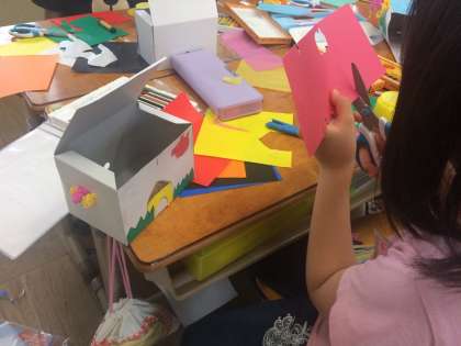 箱を組み立てて,飾りつけをしました。