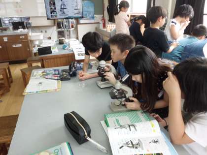 メダカのたんじょうの学習をしています。 今日は,顕微鏡の使い方を学習しました。