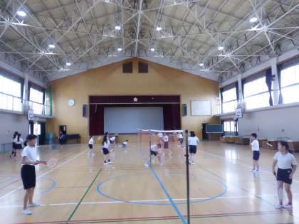 放課後の部活動の様子です。 体育館では,バドミントン部が活動をしています。