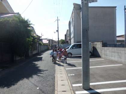 朝の登校の様子です。 素敵な天気です。