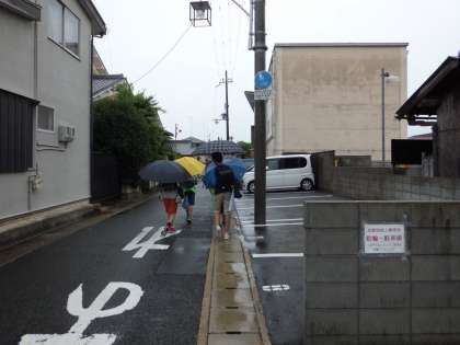 傘をさして並んでいます。