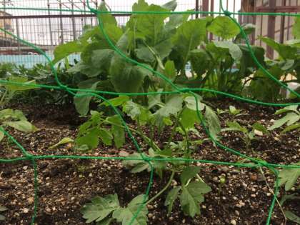 フウセンカズラは,つるが出てきたのでネットを張りました。