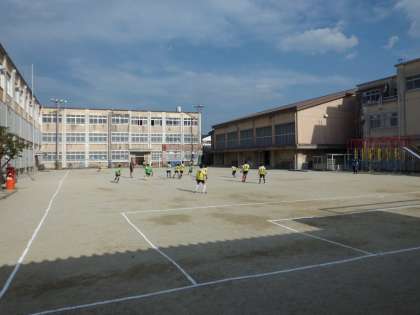 グラウンドでは,サッカー部が活動をしています。