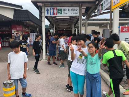 福山サービスエリアに着きました。もうすぐ車中で昼食をとります。お家の人が早朝から作ってくれたお弁当。今からワクワクしている様子です。
