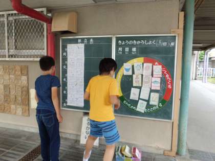給食委員会の子どもたちが,栄養黒板の作成をしていました。