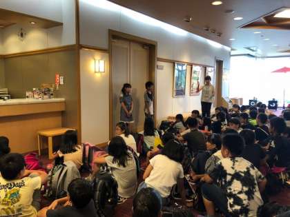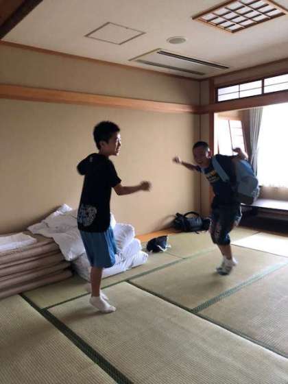 「良寛荘」に着きました。入館式を終え、部屋に入り、大興奮の子どもたちです。