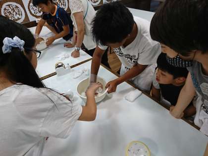 先ほどのうどんは、すでにこねてあった生地を使ってのお持ち帰り用うどん作りでした。続いては、小麦粉からこねての本格うどん作りです。