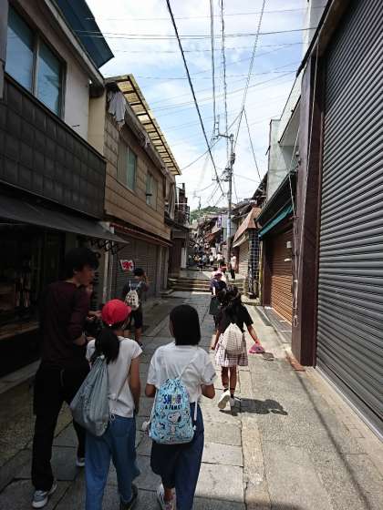 うどん作りに少し時間がかかったので、金比羅さん散策は残念ながら短めで終了。子どもたちお待ちかねのお土産タイムです。即決する子、悩みに悩む子、様々です。