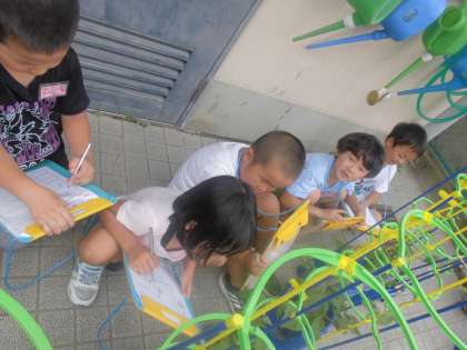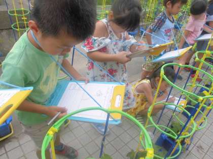 あさがおの成長の様子を観察しました。