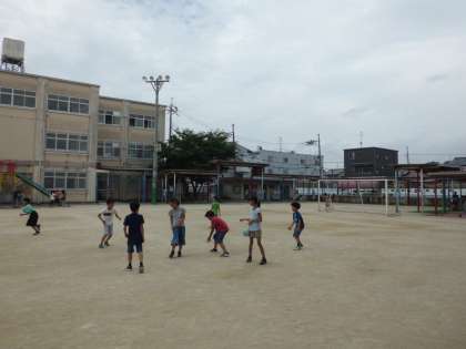 グラウンドで元気よく遊んでいます。