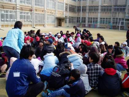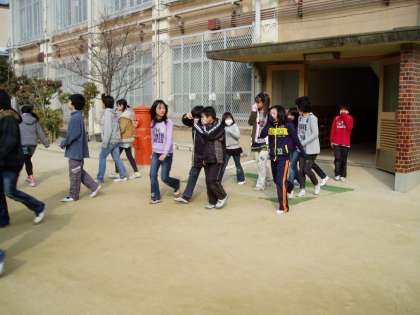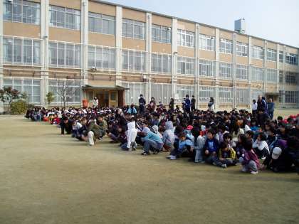 避難訓練 公開日 2011/01/24 更新日 2011/01/24 学校の様子 地震と火災を想定した避難訓練を実施しました。休憩時間中に地震が起きたら,何処へ,どのように避難するのかを学習した後に訓練をしました。運動場で遊んいた子どもたちは,運動場の中央に集まり,姿勢を低くして安全を確保していました。その後,火災が起きたことを想定し,全員が運動場へ二次避難しました。