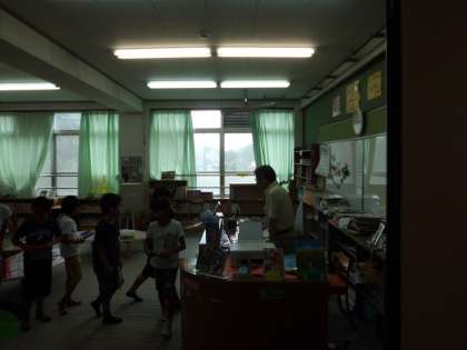 図書室では,たくさんの子どもたちが,本の返却をしていました。