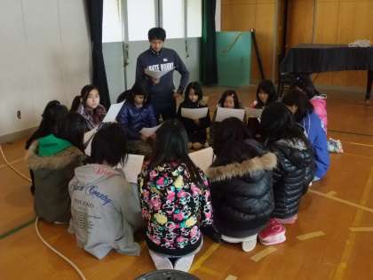 出演練習以外にも,グループに分かれて,詩を読む練習などもしました。18日の本番が大変楽しみになりました。