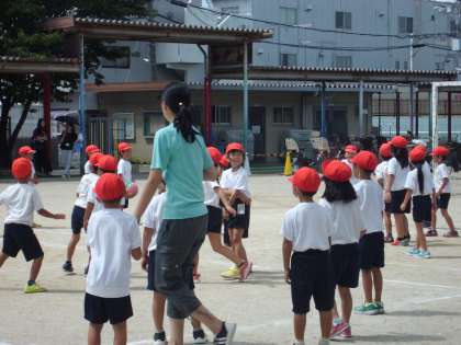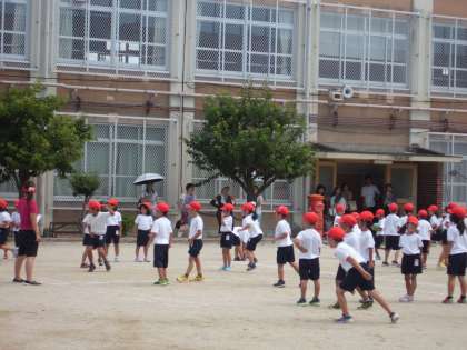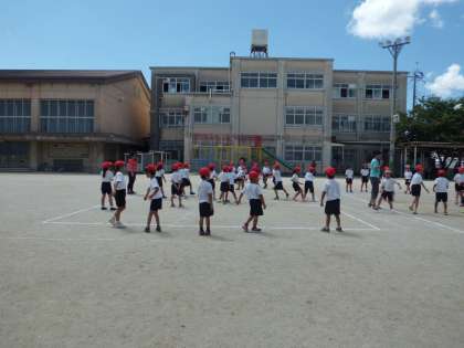 1年生が学年で体育をしていました。 ドッジボールです。ボールを怖がらず積極的に立ち向かう姿に成長を感じました。