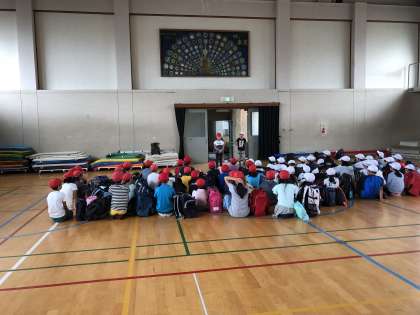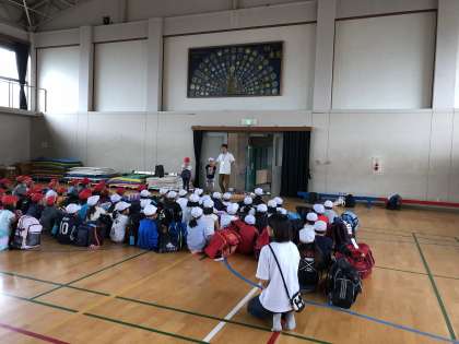 0909 4年みさきの家だより1日目1 公開日 2018/09/09 更新日 2018/09/09 学校の様子 9月9日(日)7:35〜 出発式の様子です。明親小学校の体育館で校長先生の話を聞いています。