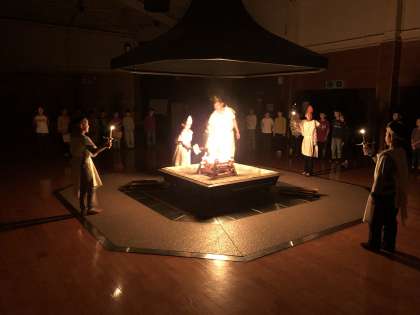 キャンプファイヤーに火が灯されました。