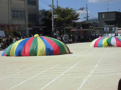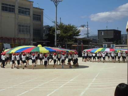 1003 運動会だより7 公開日 2018/10/03 更新日 2018/10/03 学校の様子 若草学級と3年生の団体演技「あなたにとどけ!シアワセバルーン!」です。 バルーンを使った楽しい演技でした。