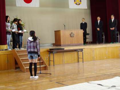 150周年記念式典 公開日 2011/02/10 更新日 2011/02/10 学校の様子 今日は明親小学校の創立150周年を祝う式典や行事がありました。沢山の方々にご来校いただき,みんなでお祝いすることができました。写真は,記念式典の様子です。