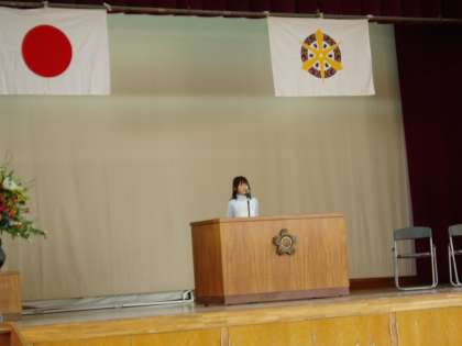 150周年記念行事では,高学年と低学年の代表がスピーチをしました。友だちのことや頑張っている部活動のことを伝えました。