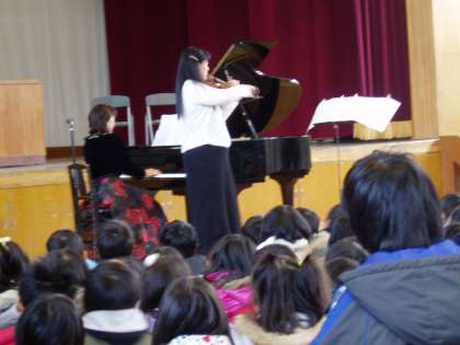 記念行事では,6年生の美しい歌声を披露したり,演奏家をお招きして「記念演奏会」を催したりしました。
