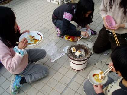 以前にもお知らせしましたが,3年生は社会科で昔の暮らしについて学習しています。その学習の中で,先日,七輪と炭を使ってお餅を焼きました。火おこしの大変さや苦労を実感したようです。でも,一番驚いていたのは,七輪で焼かれたお餅が,ドンドン膨らんでいく様子でした。