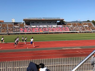 21日(日)西京極競技場で陸上記録会がありました。30名ほどの子どもたちが,出場しました。100メートル走や,走り幅跳び,ソフトボール投げ,1500メートル走,リレーなどの競技に参加しました。それぞれがベストの結果を出すべく,奮闘しました。秋晴れで,日差しも強い中でしたが,自分の競技はもちろん,友達の出番になると,少しでも近くでと場所を移動しながら応援もがんばっていました。