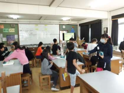 今日は,塩酸の中にアルミ片や鉄片を入れ,変化の様子を調べました。