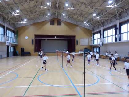 体育館では,バドミントン部が活動をしています。
