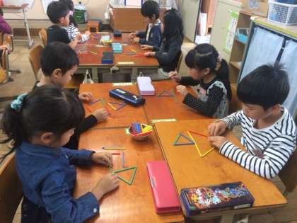 算数で「かたちづくり」の学習をしました。