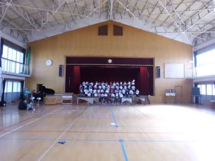 体育館で合奏の練習をしています。