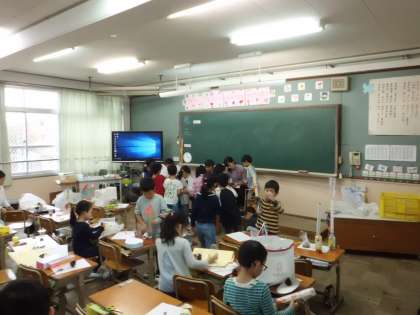 生活科の学習の様子です。 「秋といっしょに〜おもちゃづくり〜」の学習をしています。