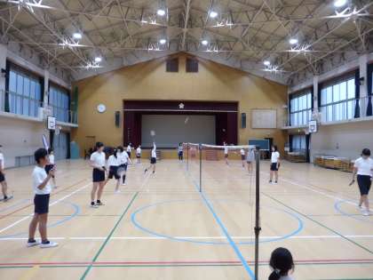 体育館では,バドミントン部が活動をしています。