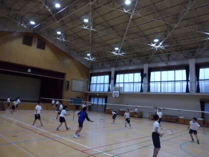 体育館では,バドミントン部が活動をしています。
