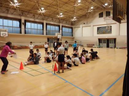 体育館では,バドミントン部が活動をしています。