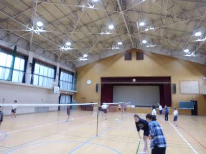 体育館では,バドミントン部が活動をしています。