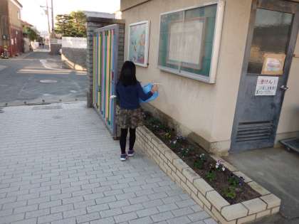環境委員会の子どもたちが当番活動をしています。
