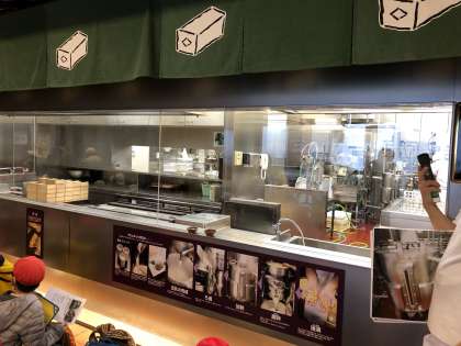 豆腐づくりの説明を聞いています。