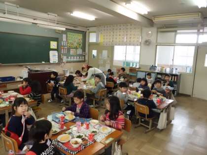 今日の献立は、キャベツ・たまねぎ・にんじんをじっくりコトコト煮込んだボルシチが登場しました。1年生の野菜が苦手だな…という児童もパクリ野菜の甘味を味わって食べていました。
