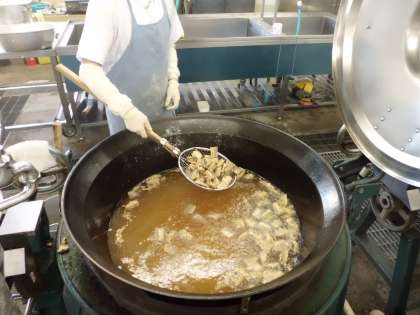 けずりぶしとほしいいたけからとっただしのきいた野菜あんを教室でかけて食べる献立でした。子供たちにもカリッとしているところと、トロリとしているところ両方おいしいという声をいただき嬉しいキモチになりました。
