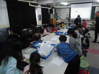 子どもたちは,グループのメンバーと協力して,レゴを素早く組みたたてて,タブレットを使って,いろいろな動きをプログラミングしていき,試行錯誤しながら楽しくレゴを動かしていました。