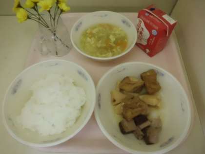 なま節とたけのこ・厚あげにじっくり「さとう・みりん・しょうゆ・料理酒」で味付けした献立です。中々おうちでは食べる週間がないなま節かと思いますが、煮汁と共になま節を美味しくいただきました。