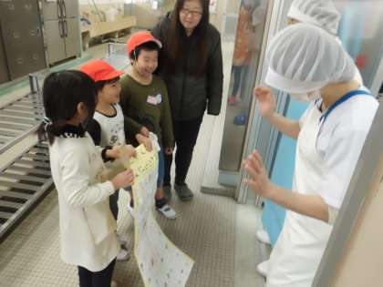 調理員さん「いつもありがとう」メッセージ渡し〜給食週間の取組〜