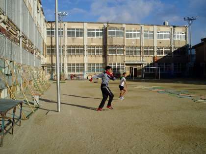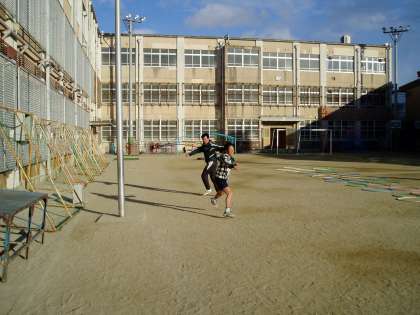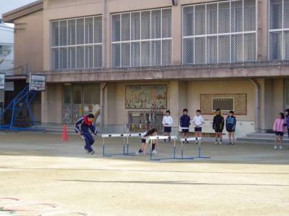 陸上部が,本年度最後の練習を行いました。練習では,6年生と教職員が,障害物リレーで競い合いました。結果は,子どもたちの完勝でした。