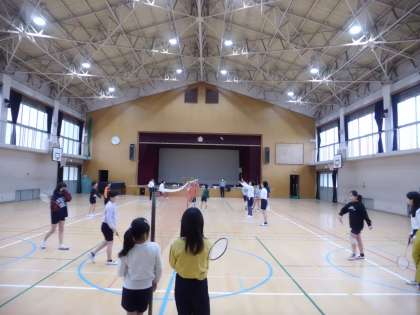 体育館では,バドミントン部が活動をしています。