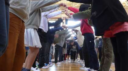 最後は全校児童と保護者の皆さんでアーチを作って,6年生を送り出しました。